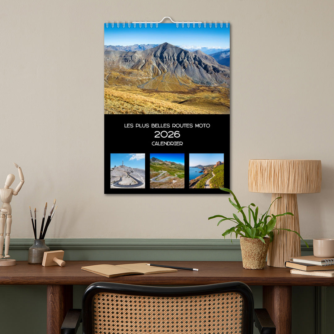 Découvrez chaque mois une route spectaculaire à faire au moins une fois dans sa vie, accompagnée de superbes photos et d'une courte présentation. Ce grand calendrier A3 regroupe également toutes les grandes dates du monde motard: Grands Prix, salons, festivals… pour ne rien manquer de la saison 2026 !